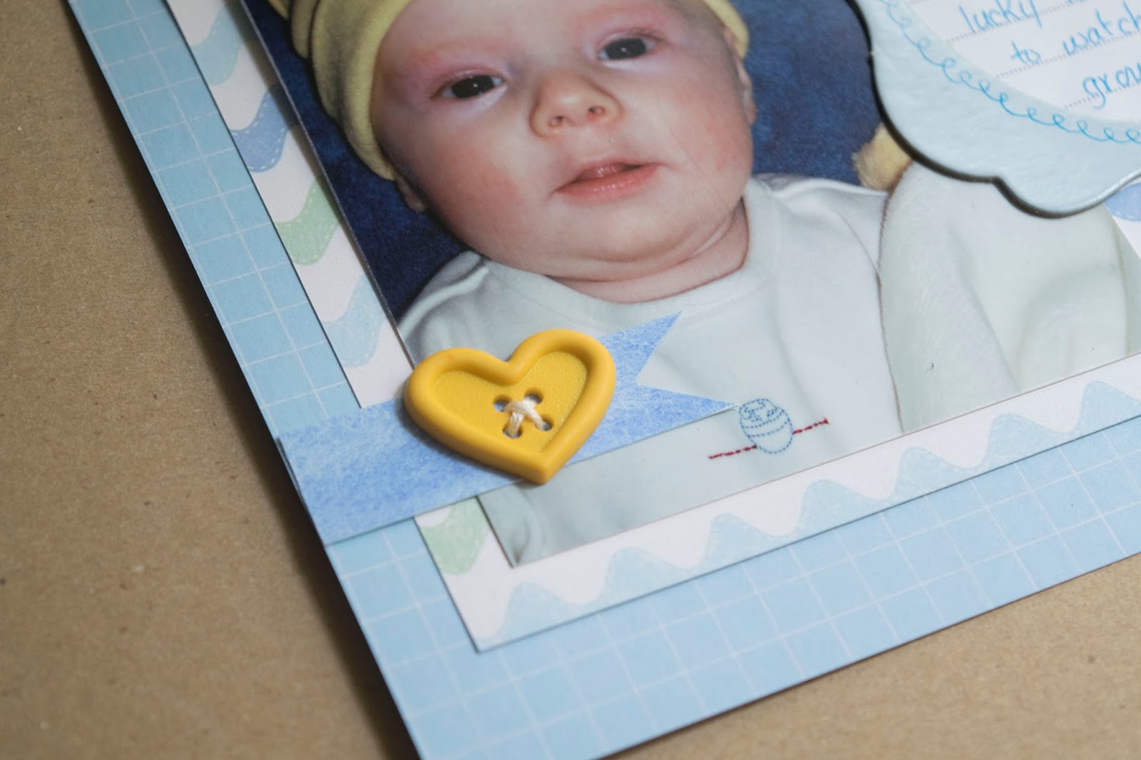 I have so many baby themed embellishments in my stash. For some reason I have put off scrapbooking newborn photos for both boys, so I was happy to use a few.